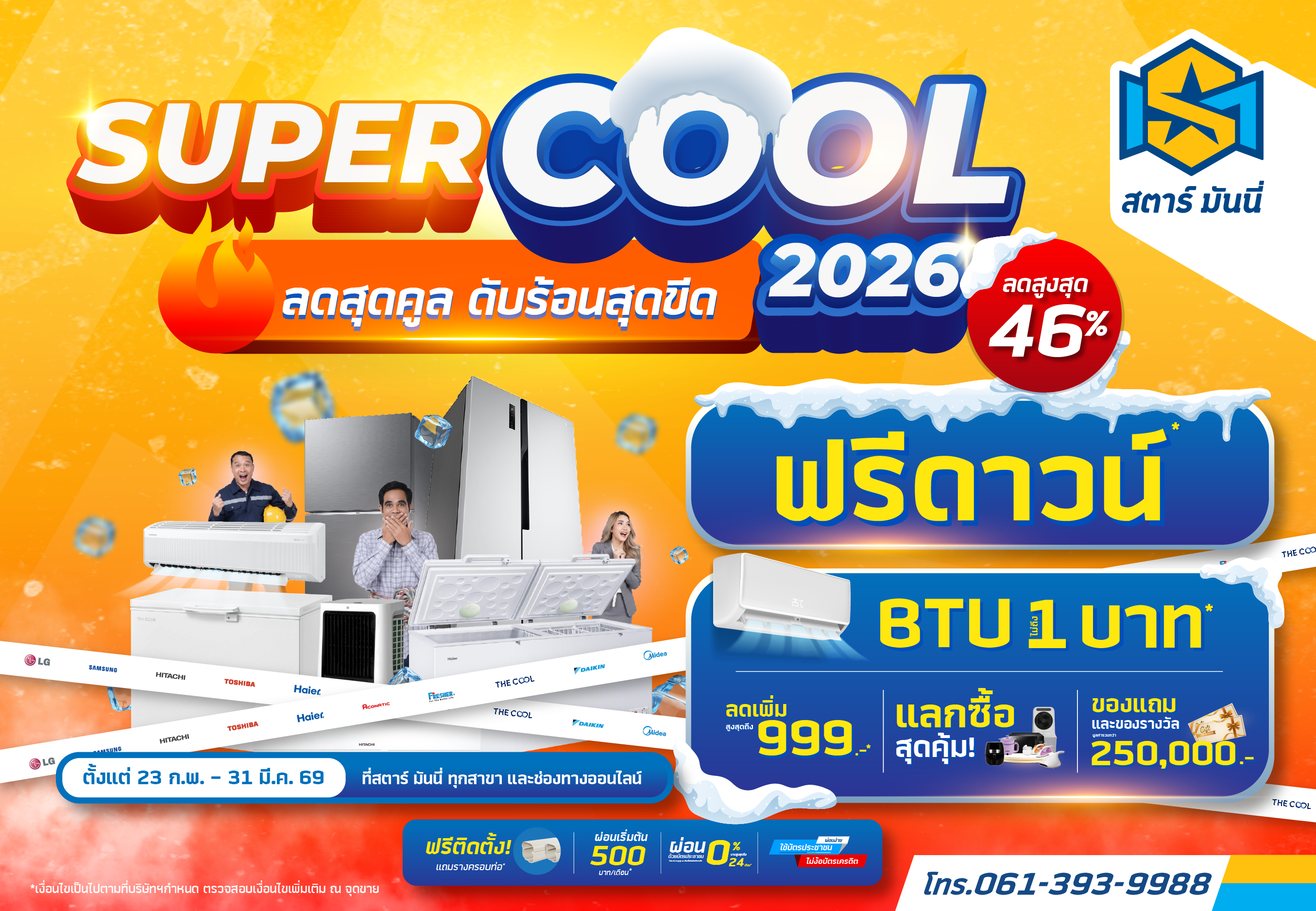 แอร์เริ่มต้น BTU ไม่ถึง 𝟏 บาท* พร้อมสิทธิพิเศษเพียบ!!