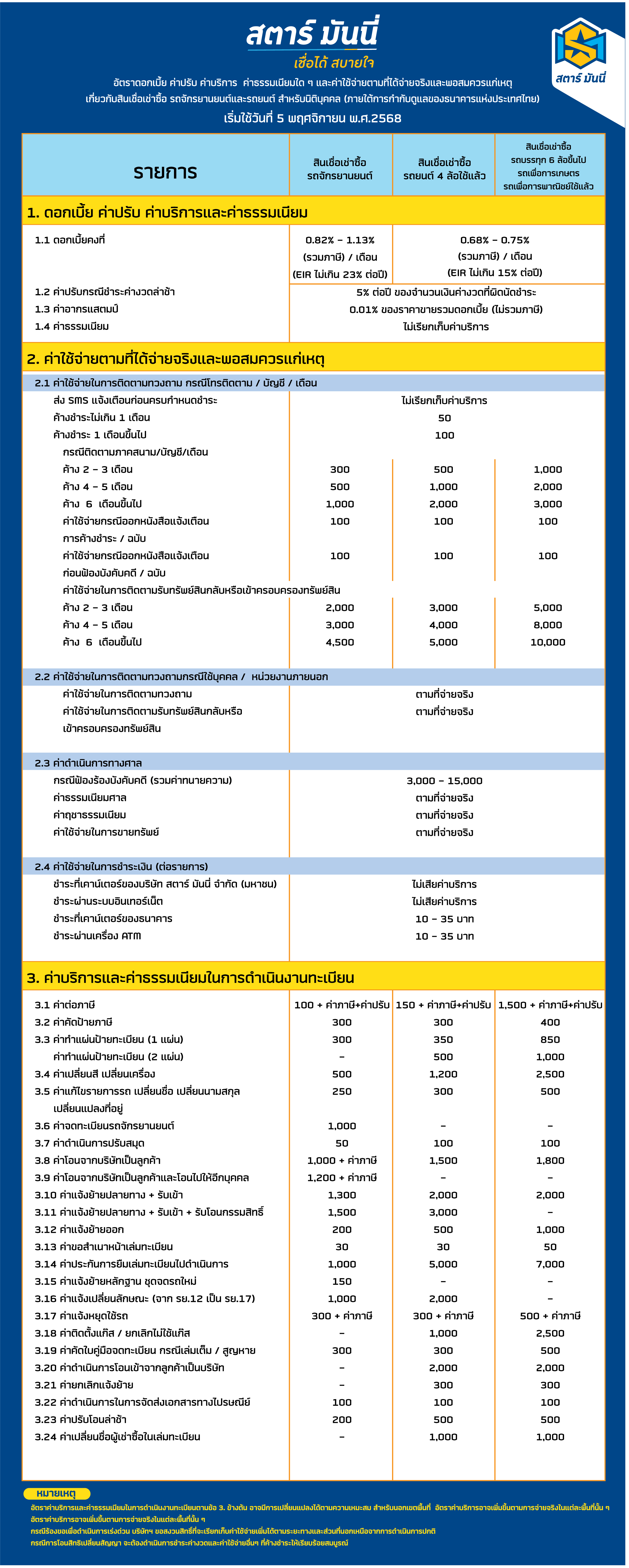 ประกาศสำหรับสินเชื่อเช่าซื้อรถจักรยานยนต์และรถยนต์ สำหรับนิติบุคคล (ภาตใต้การกำกับดูแลของธนาคารแห่งประเทศไทย)