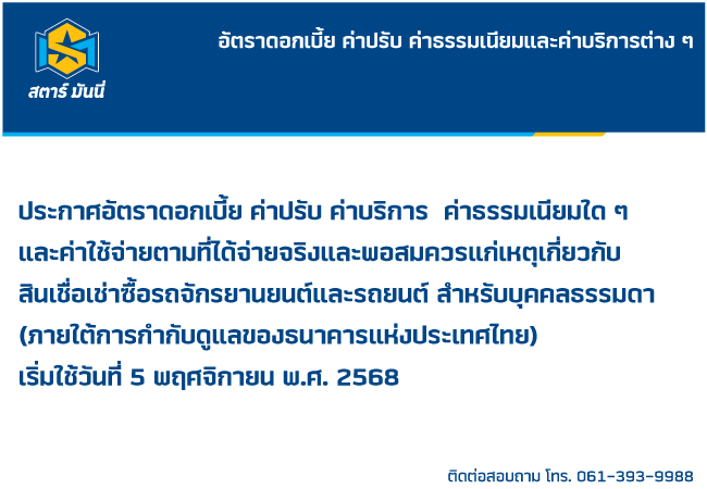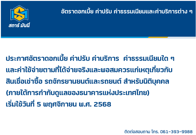 ประกาศอัตราดอกเบี้ยและค่าธรรมเนียม (ฉบับล่าสุด)