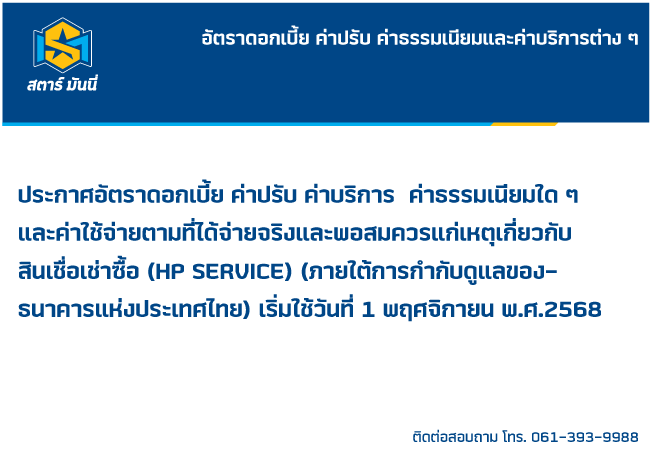 ประกาศสำหรับสินเชื่อเช่าซื้อ (HP SERVICE) (ภาตใต้การกำกับดูแลของธนาคารแห่งประเทศไทย)